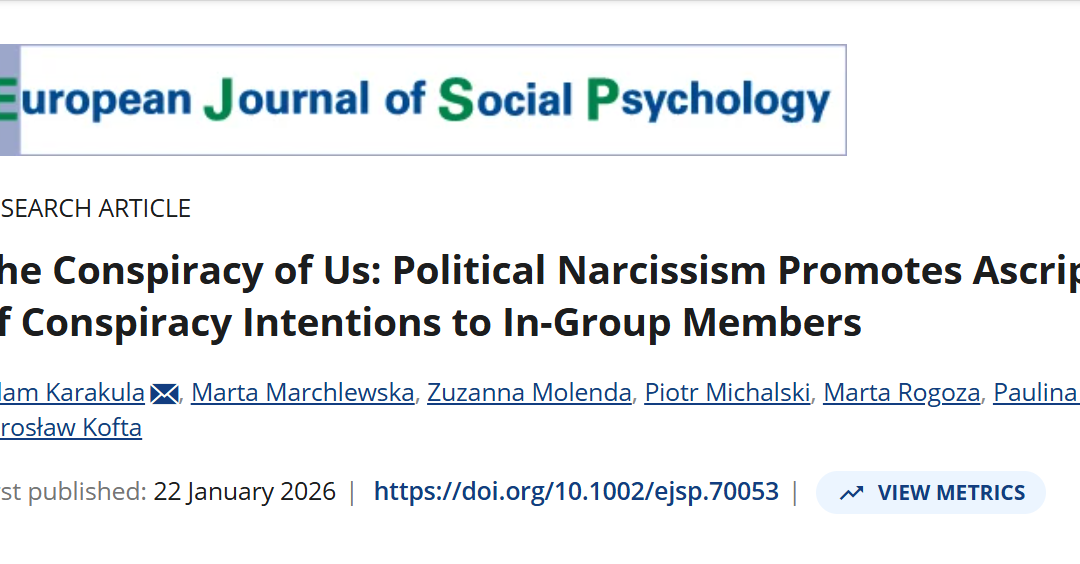 Najnowsze badania zespołu Laboratorium Poznania Politycznego IP PAN pokazują, że polityczny narcyzm kolektywny sprzyja nie tylko wierze w spiskowe działania „grupy obcych”, ale też… wierze w teorie spiskowe głoszące, że członkowie własnej grupy są spiskowcami!