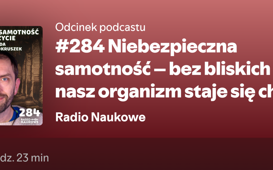 Karolina Głowacka, autorka podcastu Radio Naukowe, przeprowadziła ostatnio kolejną wyjątkową rozmowę - tym razem z prof. Łukaszem Okruszkiem. Prof. Okruszek opowiada w niej o najnowszych wynikach badań nad samotnością i rozprawia się z różnymi mitami powstałymi na gruncie neuronauki społecznej.