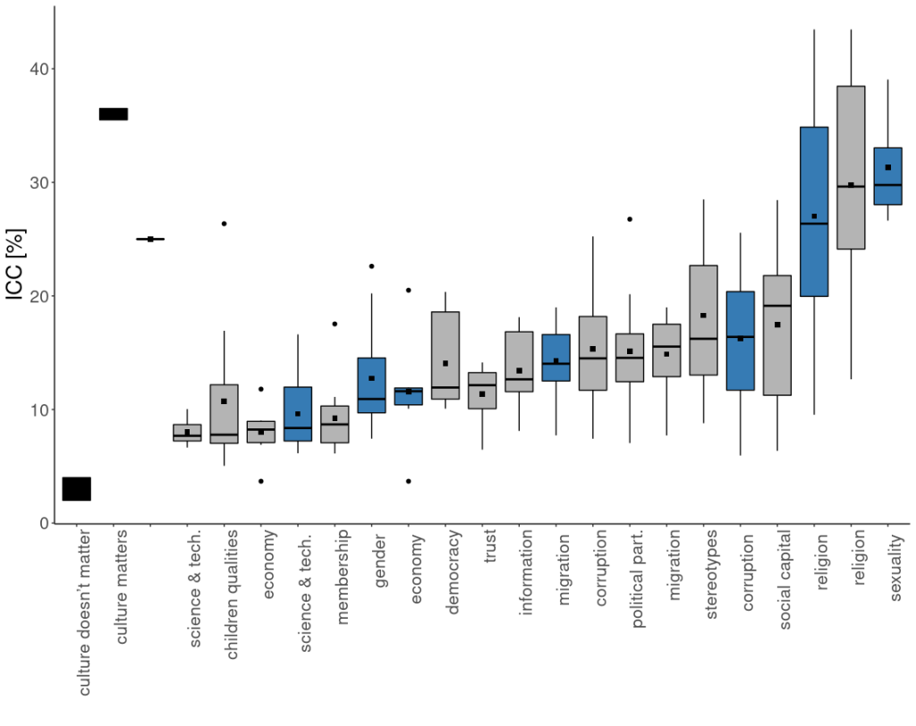 Analizując dane od ponad 147 tysięcy osób z 88 krajów 🌍, pokazali, że takie obszary jak wartości religijne, seksualność, kapitał społeczny czy przekonania o grupach obcych silnie są kształtowane przez kulturę. Z kolei poglądy ekonomiczne, pożądane cechy dzieci, stosunek do nauki i technologii czy przynależność do organizacji są podobne na całym świecie.