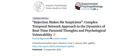 Zapraszamy do lektury najnowszego artykułu opublikowanego w czasopiśmie Schizophrenia Bulletin Open (IF = 2.0), którego autorami są Paulina Bagrowska i dr hab.